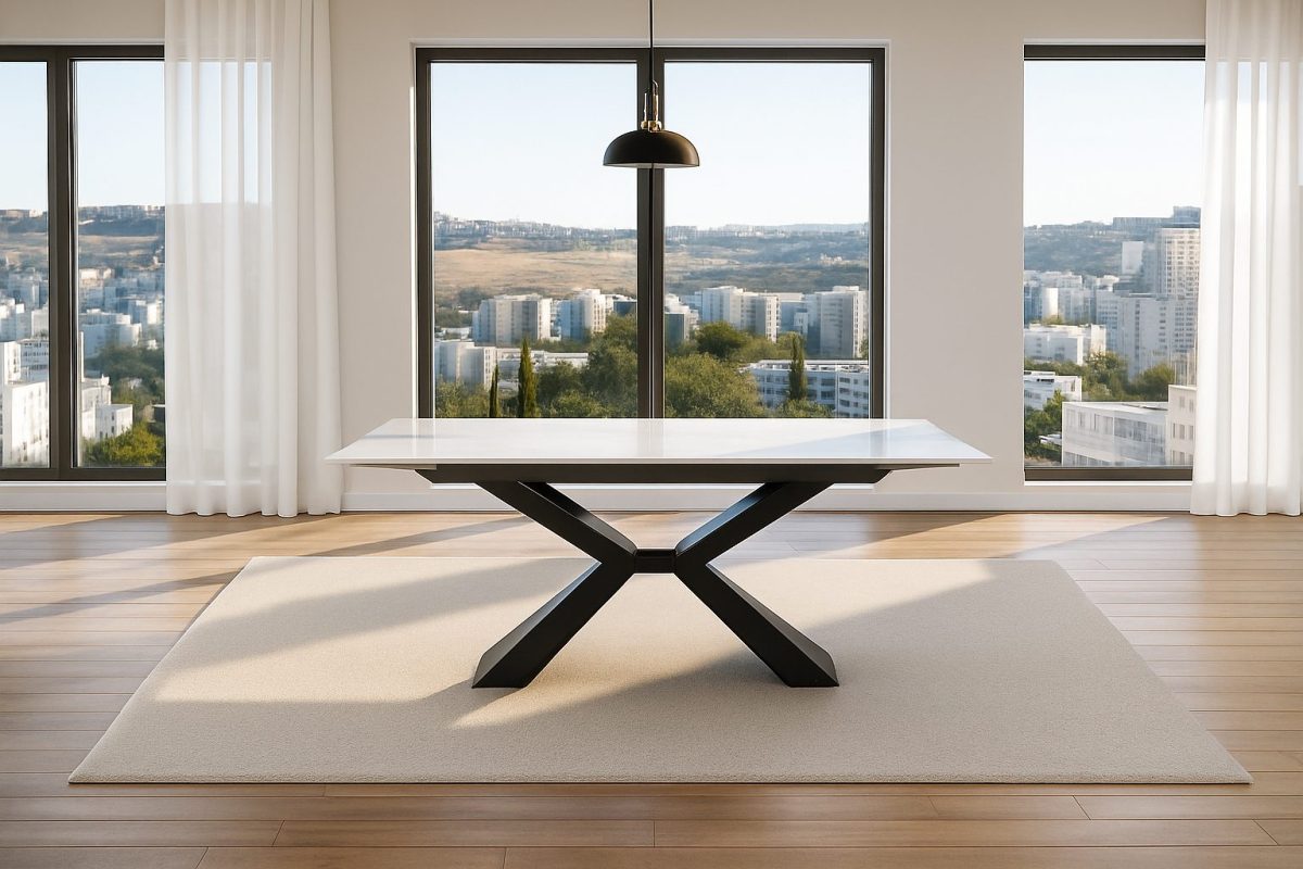שולחן אוכל דגם, “תמר” – מידות השולחן 1.10X2.10, נפתח ל 6.10 מטר, משקל השולחן 180 ק”ג.